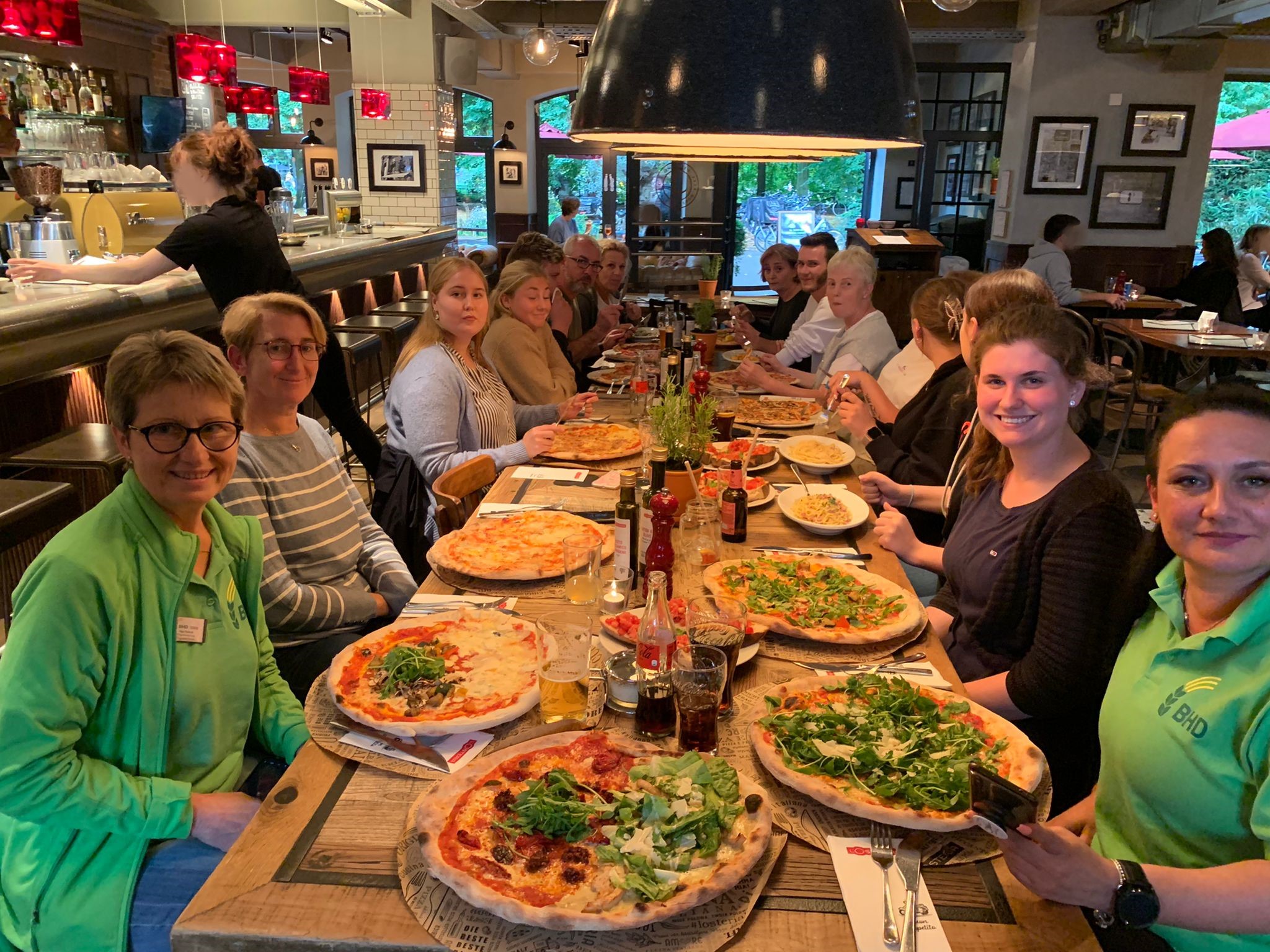 Am Ende ließen sich alle die duftenden riesigen Pizzen schmecken.