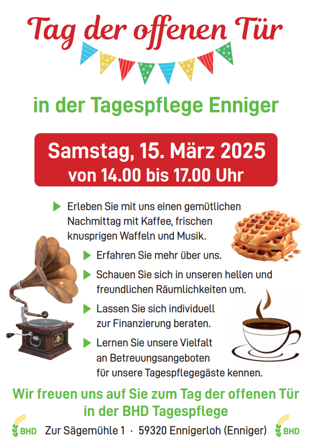 Die Tagespflege Enniger freut sich darüber, auch in diesem Frühjahr wieder viele Interessierte bei einem Tag der offenen Tür empfangen zu können.