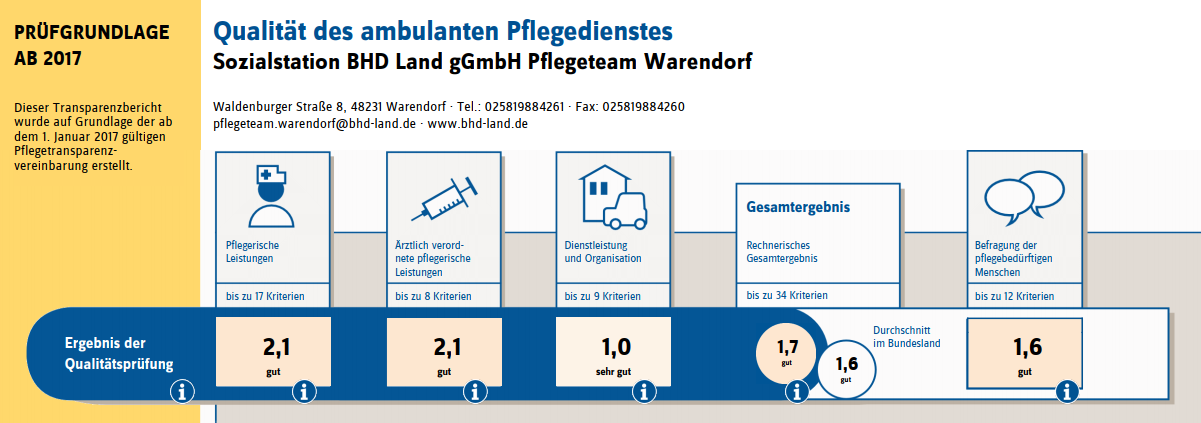 Geprüft wird die Qualität des ambulanten Pflegedienstes nach folgenden Kriterien: